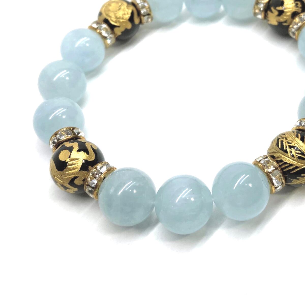 12mm 四神獣金彫オニキス×アクアマリン パワーストーン ブレスレット天然石 運気上昇 開運 ☆ 金運 お守り 青龍 白虎 玄武 朱雀 3月誕生石 (ゴールド)メンズ・レディース 男性・女性 数珠ブレス 開運 ☆
