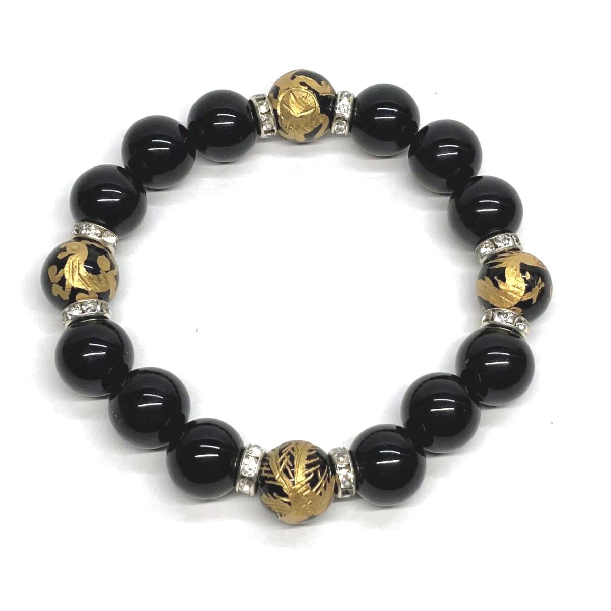 12mm 四神獣金彫オニキス×モリオン パワーストーン ブレスレット天然石 運気上昇 開運 ☆ 金運 健康運 厄払い お守り 青龍 白虎 玄武 朱雀 (シルバー)メンズ・レディース 男性・女性 数珠ブレス 開運 ☆