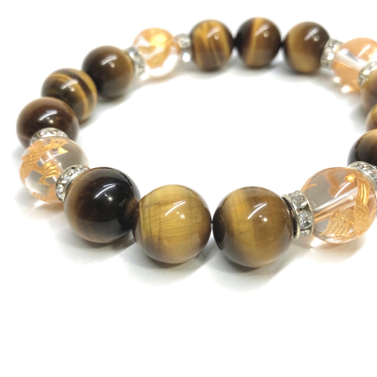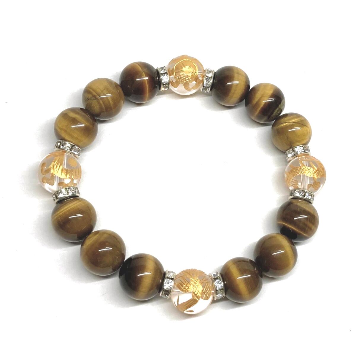 12mm 四神獣金彫水晶×タイガーアイ パワーストーン ブレスレット天然石 運気上昇 金運 ギャンブル運 お守り 青龍 白虎 玄武 朱雀 (シルバー)メンズ・レディース 男性・女性 数珠ブレス 開運 ☆