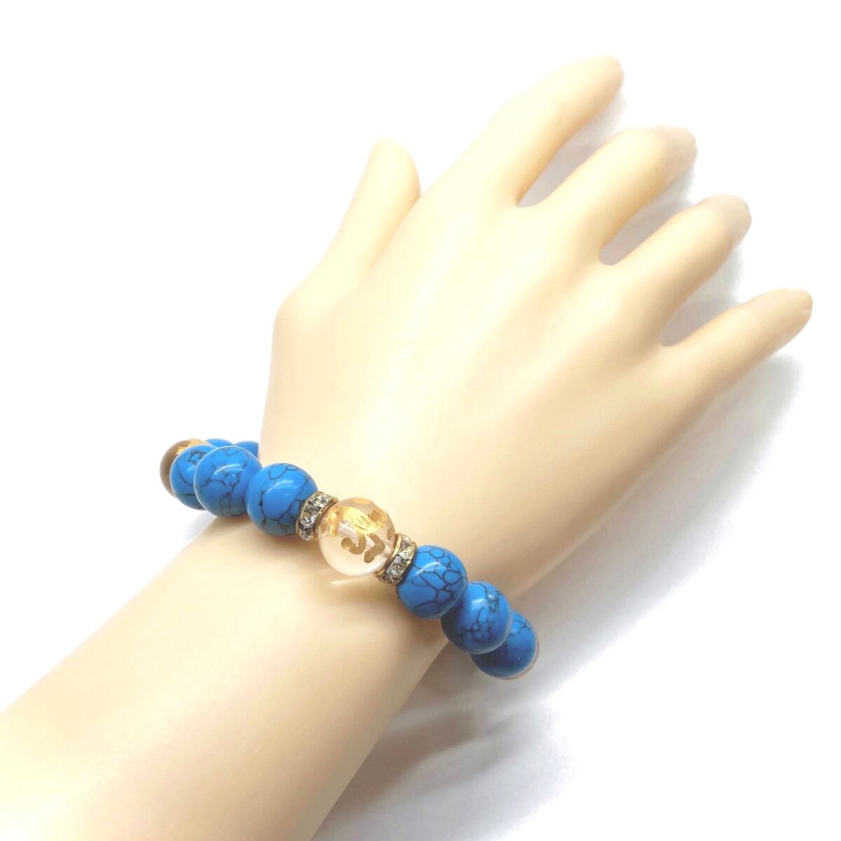 12mm 四神獣金彫水晶×ターコイズ パワーストーン ブレスレット 運気上昇 開運 ☆ 金運 健康運 厄除け お守り 青龍 白虎 玄武 朱雀 (ゴールド)メンズ・レディース 男性・女性 数珠ブレス 開運 /1 ☆