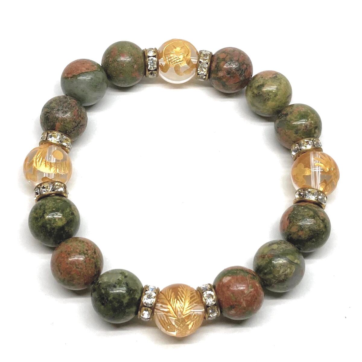 ご覧頂いているブレスレットは、四神獣金彫水晶とユナカイトを組み合わせたブレスレット。守り神である四神とパワーストーンの組み合わせで運気の流れを引き寄せる強運ブレスレットです。シンプルなデザインで男女問わず、年齢問わずご使用頂けるデザインなっております。シンプルなデザインは日常のアクセントとして、仕事やビジネスカジュアル、パーティーや特別なイベントなど様々なシーン活用できます。また、ちょっと贈り物にも最適なブレスレットになっております。四神獣を身につけて厄災から身を守り、多くの運気を呼び込まれてください。