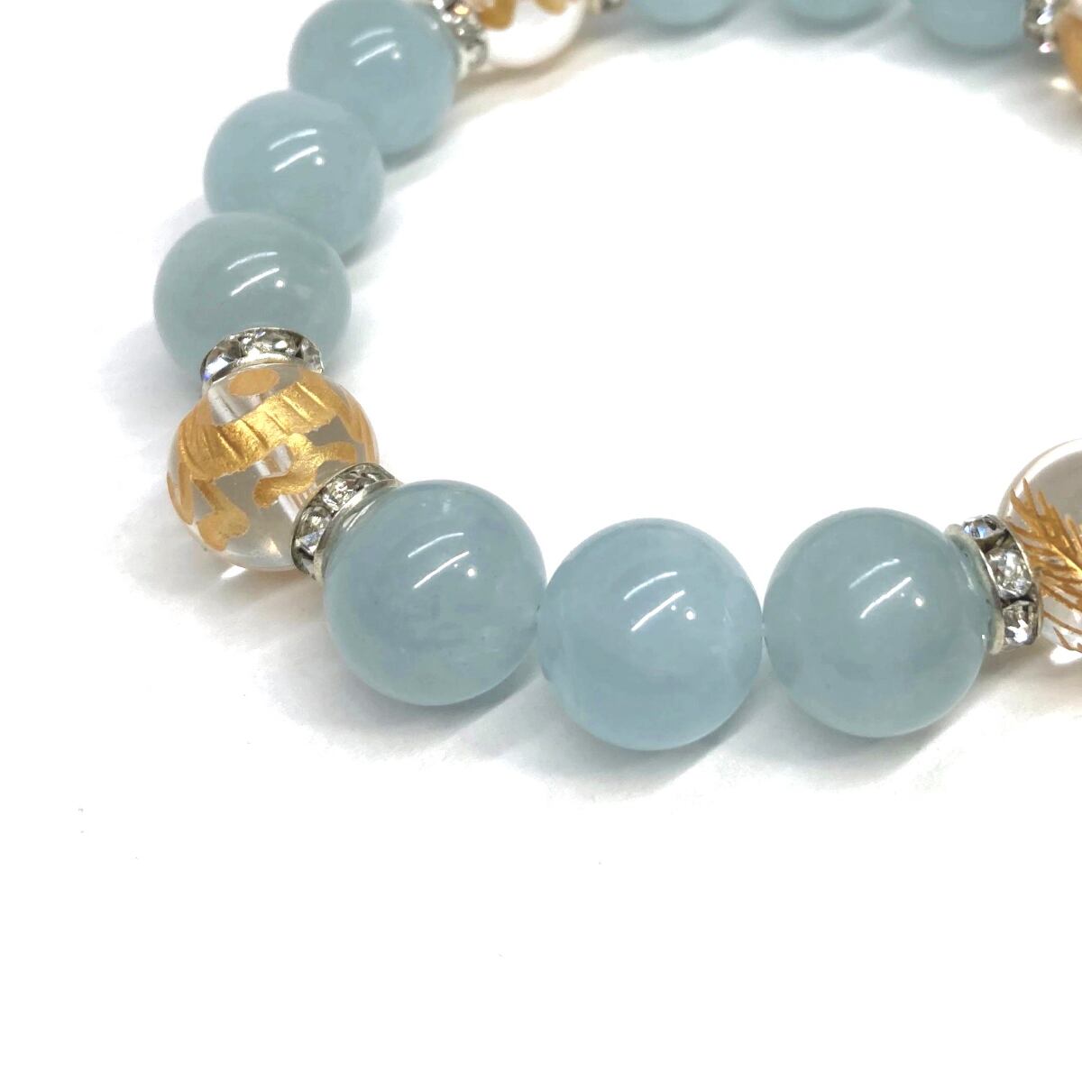 ご覧頂いているブレスレットは、四神獣金彫水晶とアクアマリンを組み合わせたブレスレット。守り神である四神とパワーストーンの組み合わせで運気の流れを引き寄せる強運ブレスレットです。シンプルなデザインで男女問わず、年齢問わずご使用頂けるデザインなっております。シンプルなデザインは日常のアクセントとして、仕事やビジネスカジュアル、パーティーや特別なイベントなど様々なシーン活用できます。また、ちょっと贈り物にも最適なブレスレットになっております。四神獣を身につけて厄災から身を守り、多くの運気を呼び込まれてください。