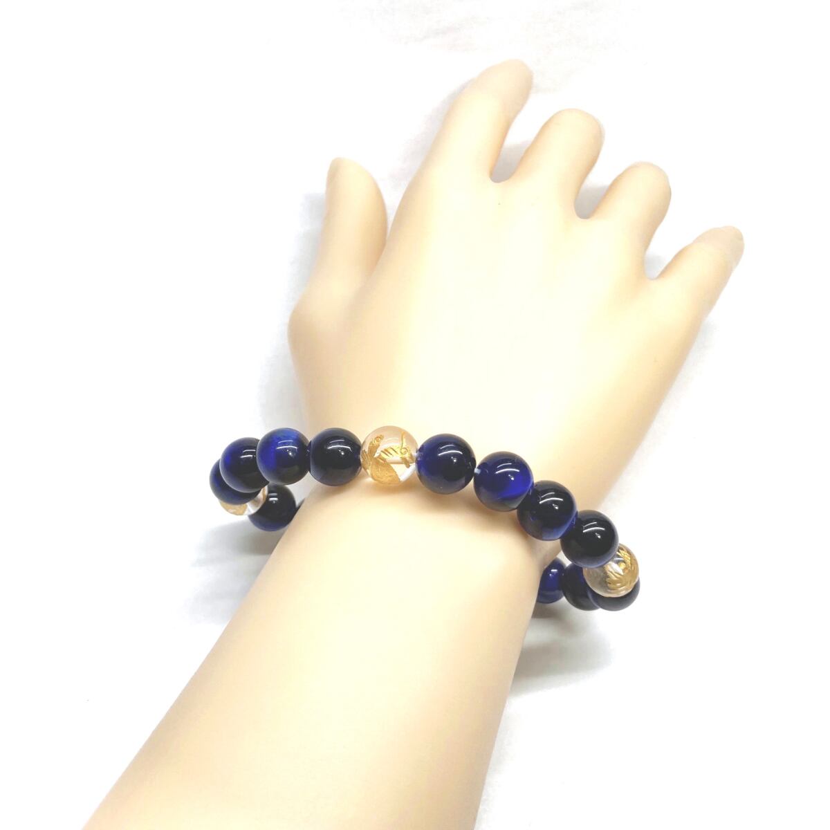 10mm 四神獣金彫水晶×ブルータイガーアイ パワーストーン ブレスレット天然石 運気上昇 開運 金運 恋愛運 お守り 青龍 白虎 玄武 朱雀 ☆