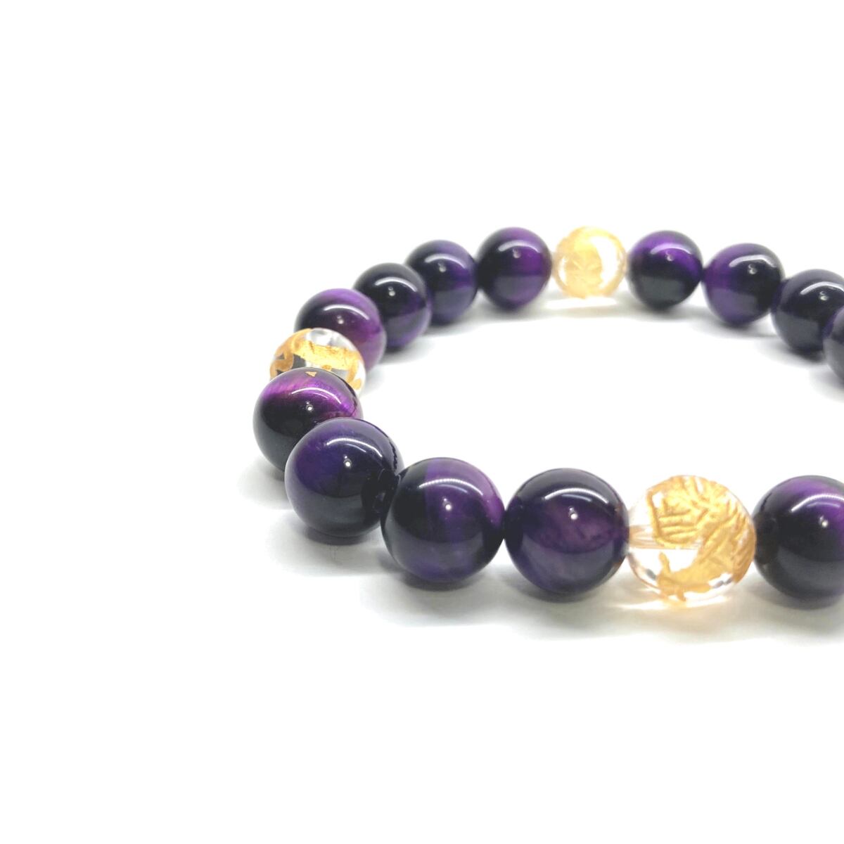 10mm 四神獣金彫水晶×パープルタイガーアイ パワーストーン ブレスレット天然石 運気上昇 開運 金運 お守り 青龍 白虎 玄武 朱雀 ☆