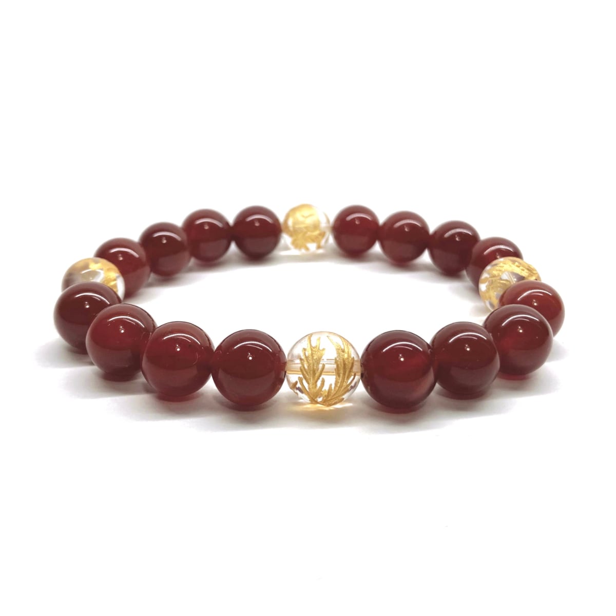 10mm 四神獣金彫水晶×赤瑪瑙 パワーストーン ブレスレット天然石 運気上昇 開運 金運 恋愛運 お守り 青龍 白虎 玄武 朱雀 シンプル ☆