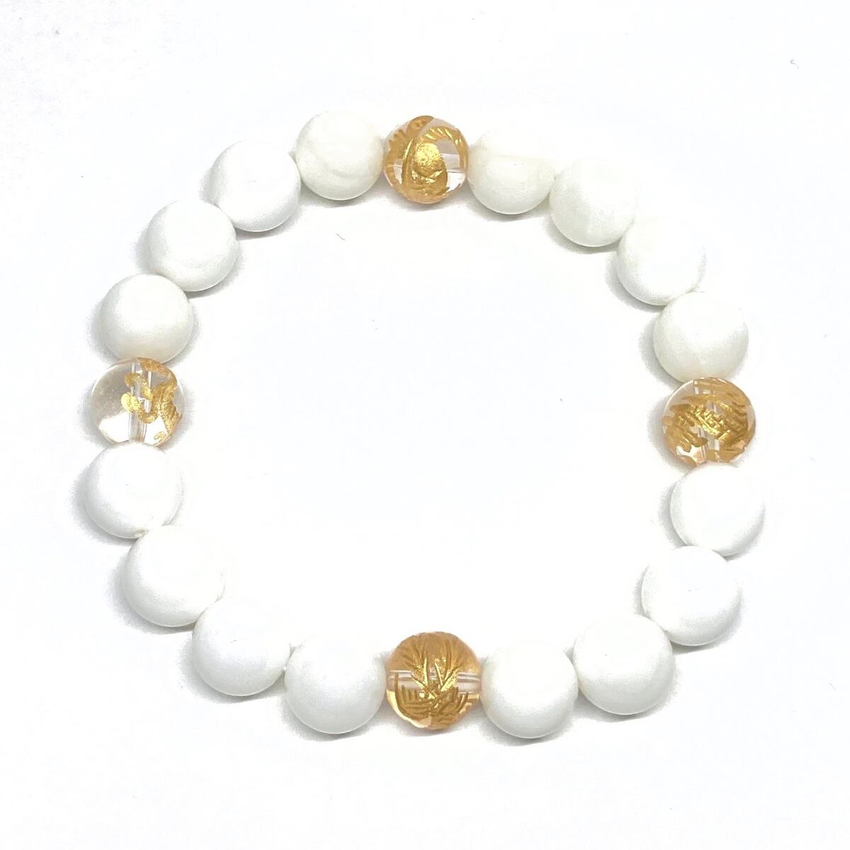 ご覧頂いているブレスレットは、四神獣金彫水晶とホワイト水晶を組み合わせたブレスレット。守り神である四神とパワーストーンの組み合わせで運気の流れを引き寄せる強運ブレスレットです。シンプルなデザインで男女問わず、年齢問わずご使用頂けるデザインなっております。シンプルなデザインは日常のアクセントとして、仕事やビジネスカジュアル、パーティーや特別なイベントなど様々なシーン活用できます。また、ちょっと贈り物にも最適なブレスレットになっております。四神獣を身につけて厄災から身を守り、多くの運気を呼び込まれてください。