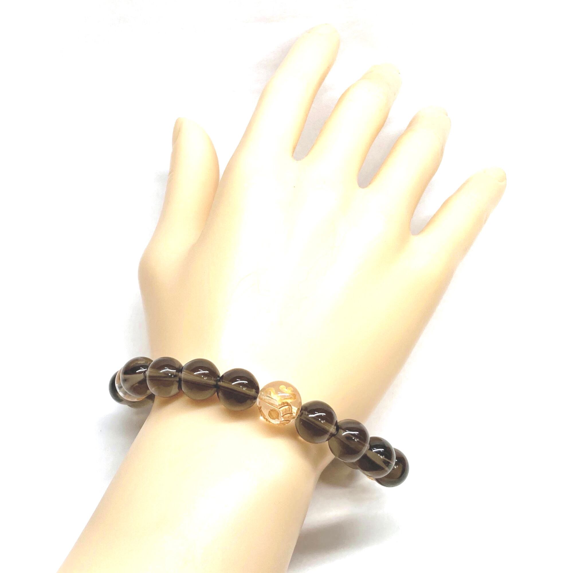 10mm 四神獣金彫水晶×スモーキークォーツ パワーストーン ブレスレット天然石 運気上昇 開運 金運 恋愛運 お守り 青龍 白虎 玄武 朱雀 ☆