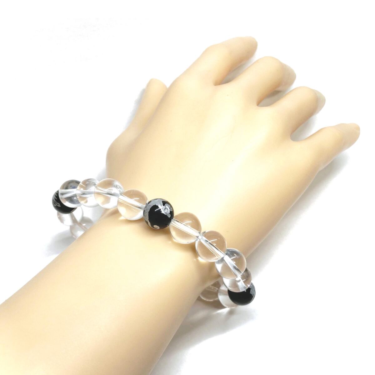 10mm 四神獣銀彫オニキス×水晶 パワーストーン ブレスレット天然石 運気上昇 開運 金運 恋愛運 お守り 青龍 白虎 玄武 朱雀 4月誕生石 ☆
