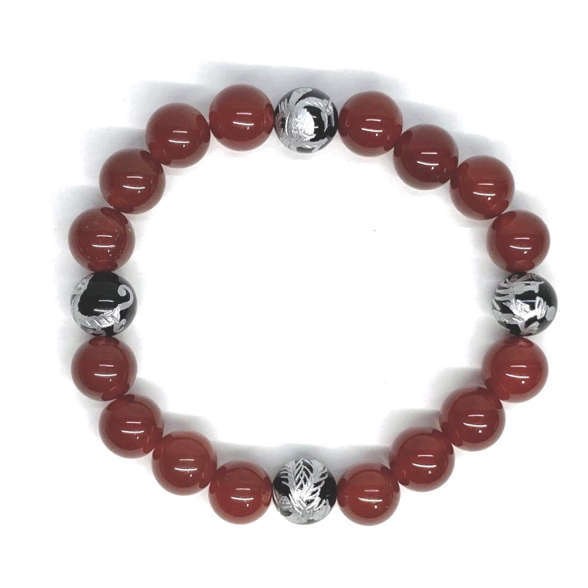 10mm 四神獣銀彫オニキス×赤瑪瑙 パワーストーン ブレスレット天然石 運気上昇 開運 金運 恋愛運 お守り 青龍 白虎 玄武 朱雀 シンプル ☆