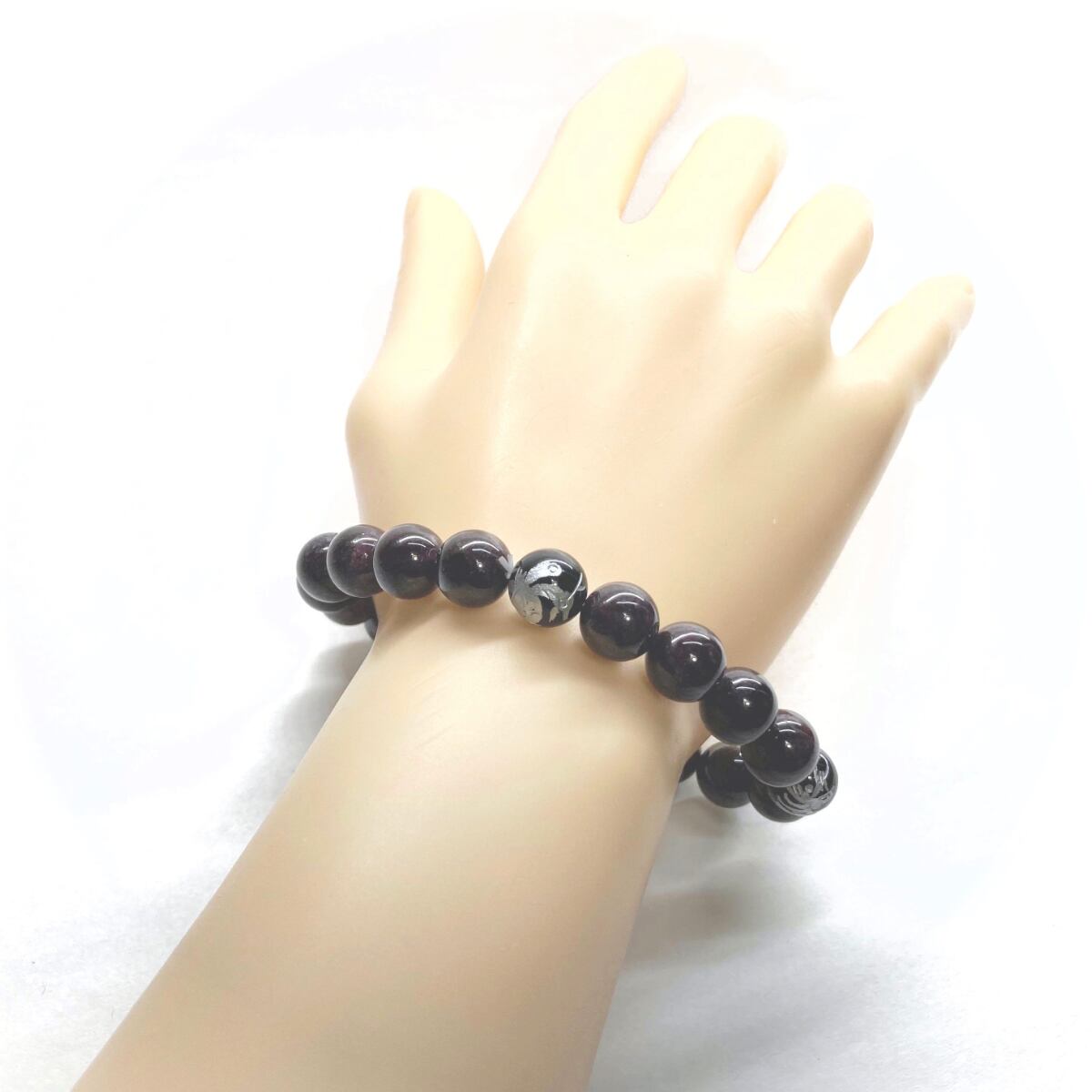 10mm 四神獣銀彫オニキス×ガーネット パワーストーン ブレスレット天然石 運気上昇 開運 金運 恋愛運 お守り 青龍 白虎 玄武 朱雀 ☆