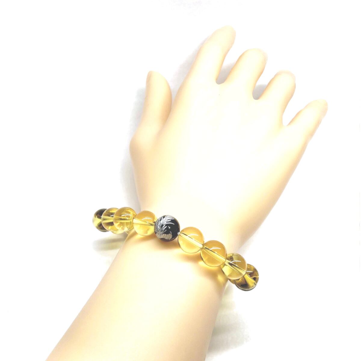 10mm 四神獣銀彫オニキス×シトリン パワーストーン ブレスレット天然石 運気上昇 開運 金運 恋愛運 お守り 青龍 白虎 玄武 朱雀 ☆