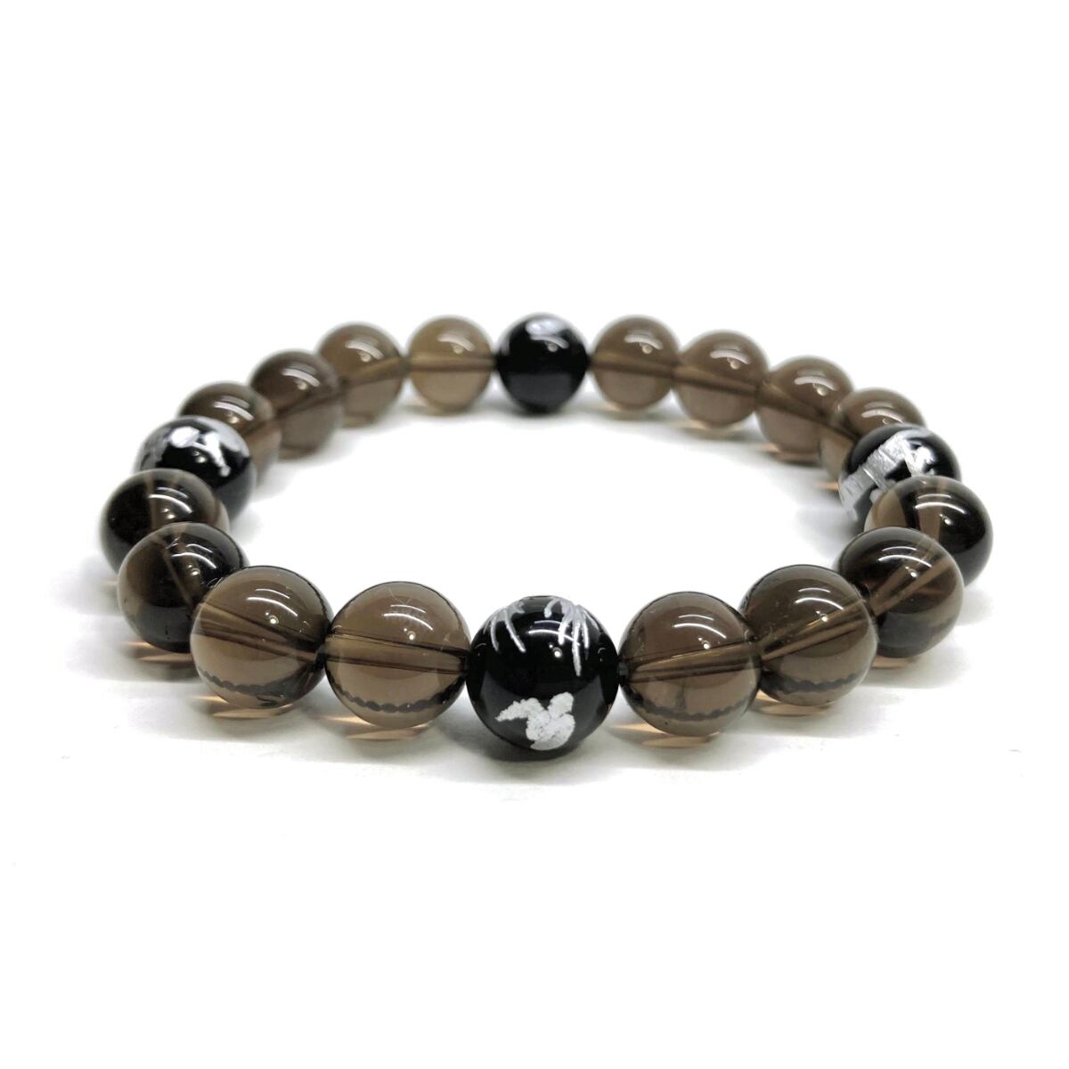 10mm 四神獣銀彫オニキス×スモーキークォーツ パワーストーン ブレスレット天然石 運気上昇 開運 金運 恋愛運 お守り 青龍 白虎 玄武 朱雀 ☆
