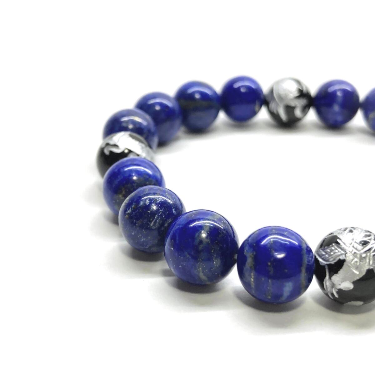 10mm 四神獣銀彫オニキス×ラピスラズリ パワーストーン ブレスレット天然石 運気上昇 開運 幸運 金運 恋愛運 お守り 青龍 白虎 玄武 朱雀 ☆