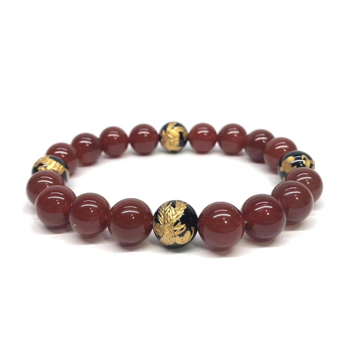 ご覧頂いているブレスレットは、四神獣金彫オニキスと赤瑪瑙を組み合わせたブレスレット。守り神である四神とパワーストーンの組み合わせで運気の流れを引き寄せる強運ブレスレットです。シンプルなデザインで男女問わず、年齢問わずご使用頂けるデザインなっております。シンプルなデザインは日常のアクセントとして、仕事やビジネスカジュアル、パーティーや特別なイベントなど様々なシーン活用できます。また、ちょっと贈り物にも最適なブレスレットになっております。四神獣を身につけて厄災から身を守り、多くの運気を呼び込まれてください。