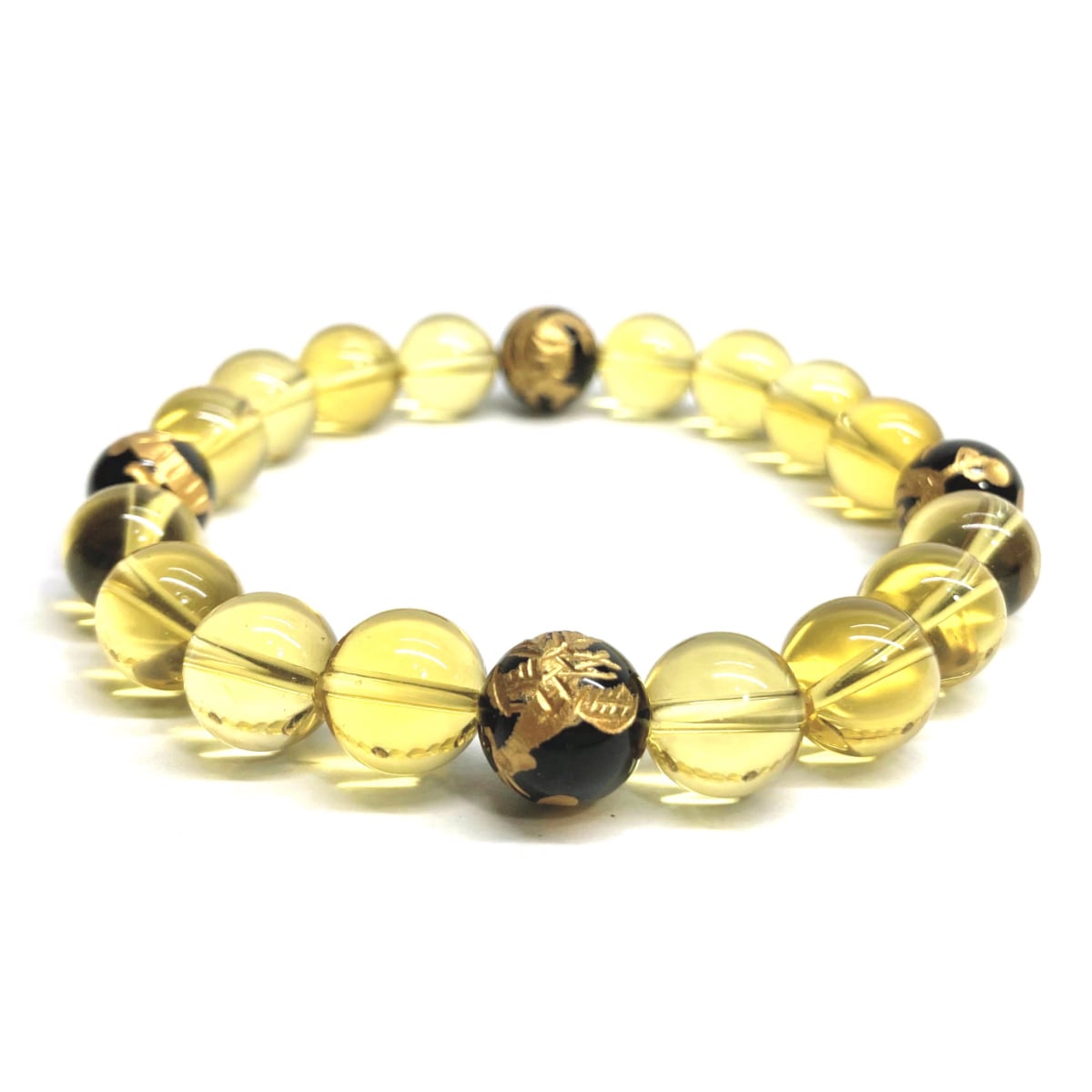 10mm 四神獣金彫オニキス×シトリン パワーストーン ブレスレット天然石 運気上昇 開運 金運 恋愛運 お守り 青龍 白虎 玄武 朱雀 ☆