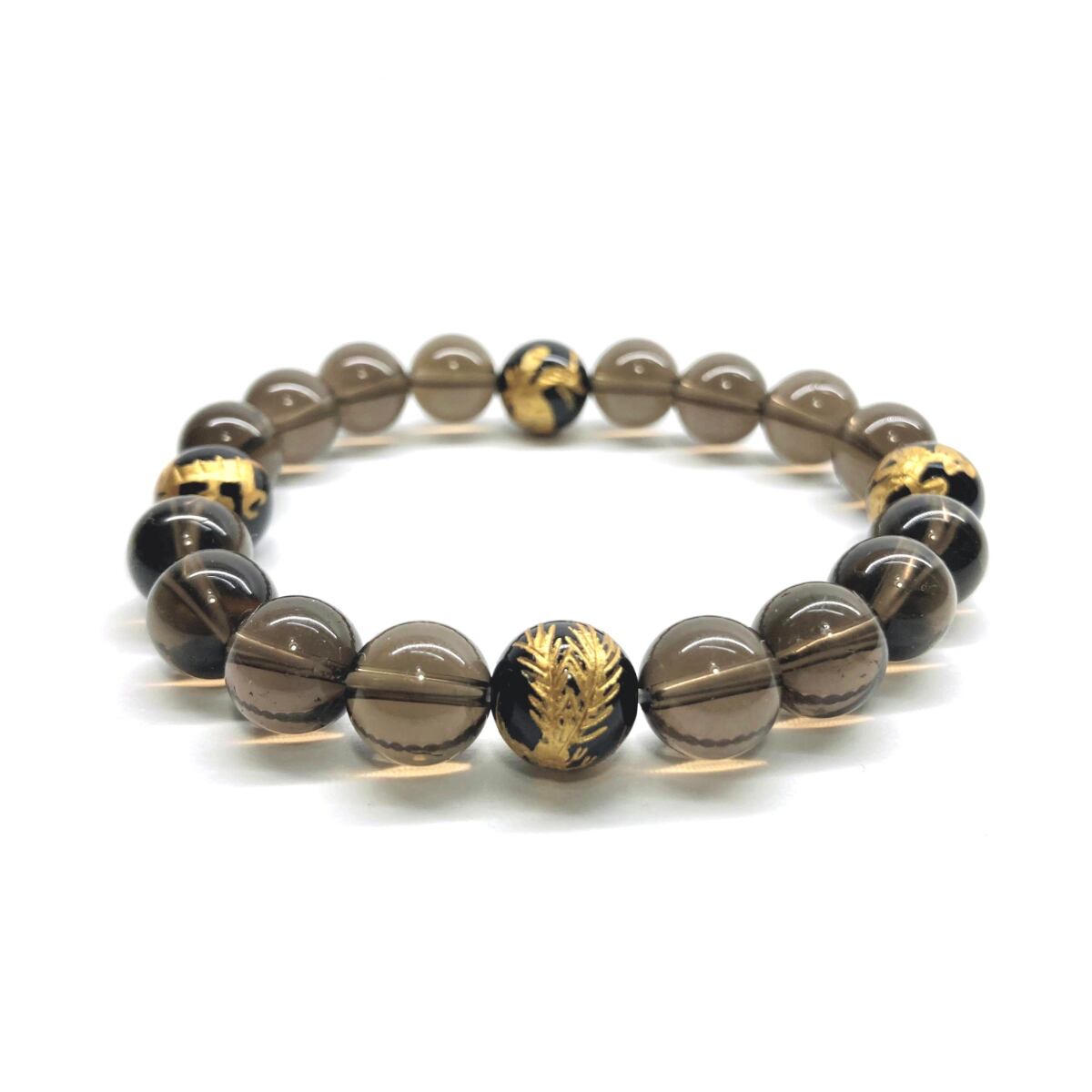10mm 四神獣金彫オニキス×スモーキークォーツ パワーストーン ブレスレット天然石 運気上昇 開運 金運 恋愛運 お守り 青龍 白虎 玄武 朱雀 ☆