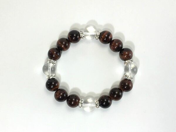 こちらは、12mm玉のレッドタイガーアイと水晶を使用した天然石ブレスレットです。石との間にはロンデルを挟み高級感を演出しています。シンプルなデザインですのでどんなコーディネートとも合わせ易いブレスレットです。石大きさは12mm玉です。内周約18cmです。気になる方は是非この機会にどうぞ。
