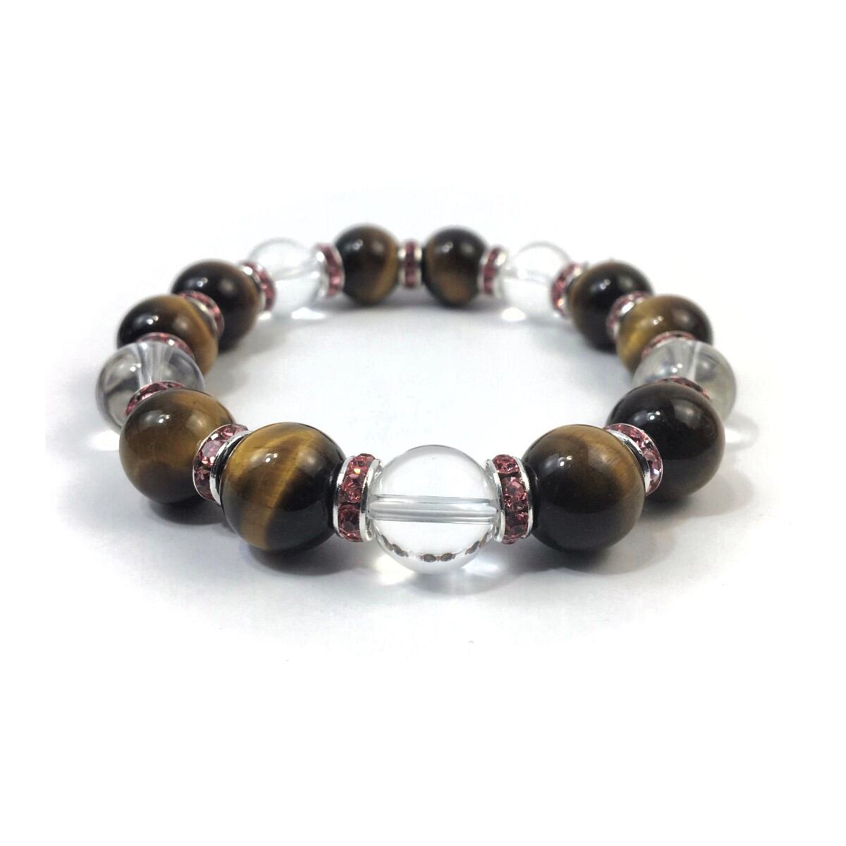 タイガーアイ&水晶 パワーストーン ブレスレット 天然石 12mm (ピンク)メンズ・レディース 男性・女性 数珠ブレス 開運 ☆