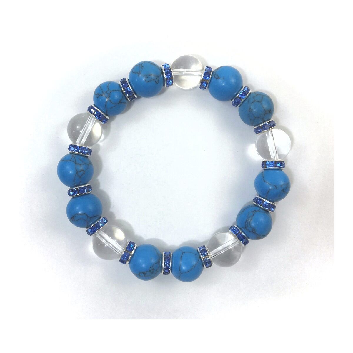 ターコイズ&水晶 パワーストーン ブレスレット 12mm (ブルー)メンズ・レディース 男性・女性 数珠ブレス 開運 ☆