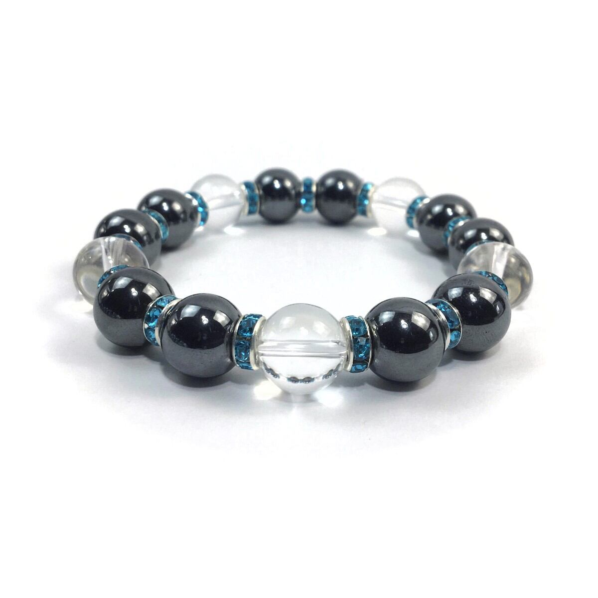 ヘマタイト&水晶 パワーストーン ブレスレット 天然石 12mm (ライトブルー)メンズ・レディース 男性・女性 数珠ブレス 開運 ☆