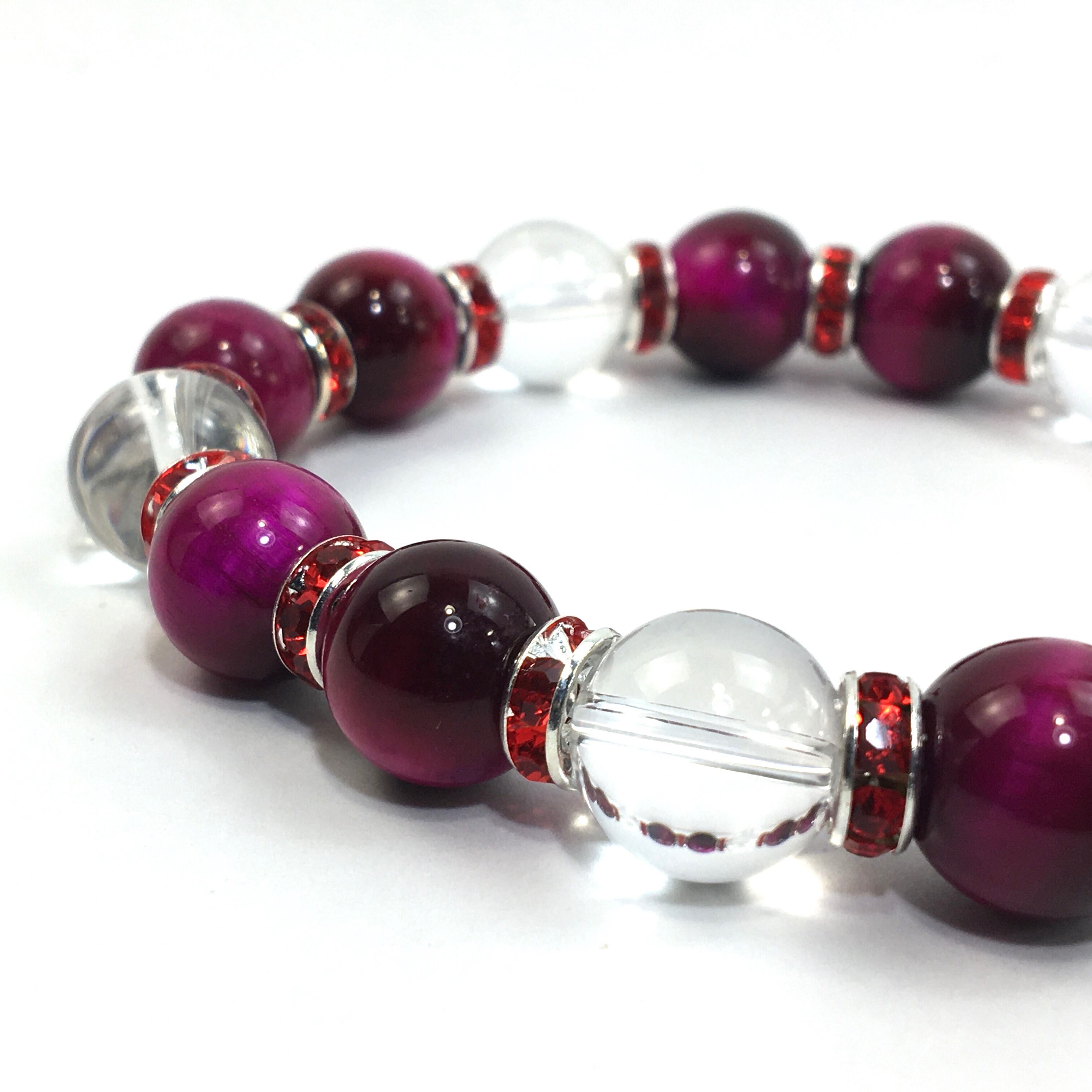 ピンクタイガーアイ&水晶 パワーストーン ブレスレット 12mm (レッド)メンズ・レディース 男性・女性 数珠ブレス 開運 ☆