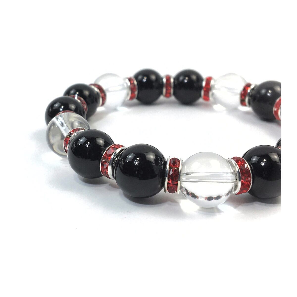 オニキス&水晶 パワーストーン ブレスレット 天然石12mm (レッド)メンズ・レディース 男性・女性 数珠ブレス 開運 ☆
