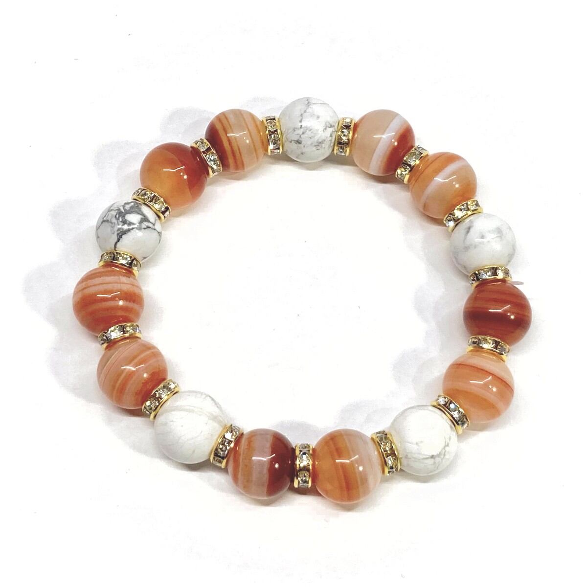 カーネリアン&ハウライト パワーストーン ブレスレット 12mm (ゴールド)メンズ・レディース 男性・女性 数珠ブレス 開運 ☆