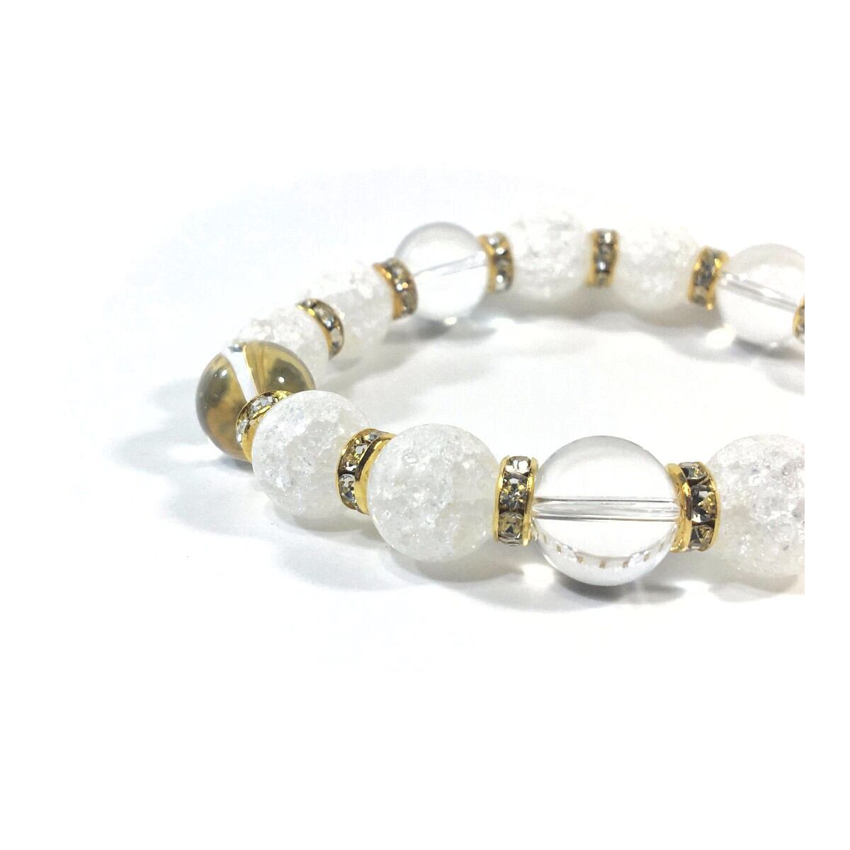 クラック水晶&水晶 パワーストーン ブレスレット 天然石 12mm (ゴールド)メンズ・レディース 男性・女性 数珠ブレス 開運 ☆
