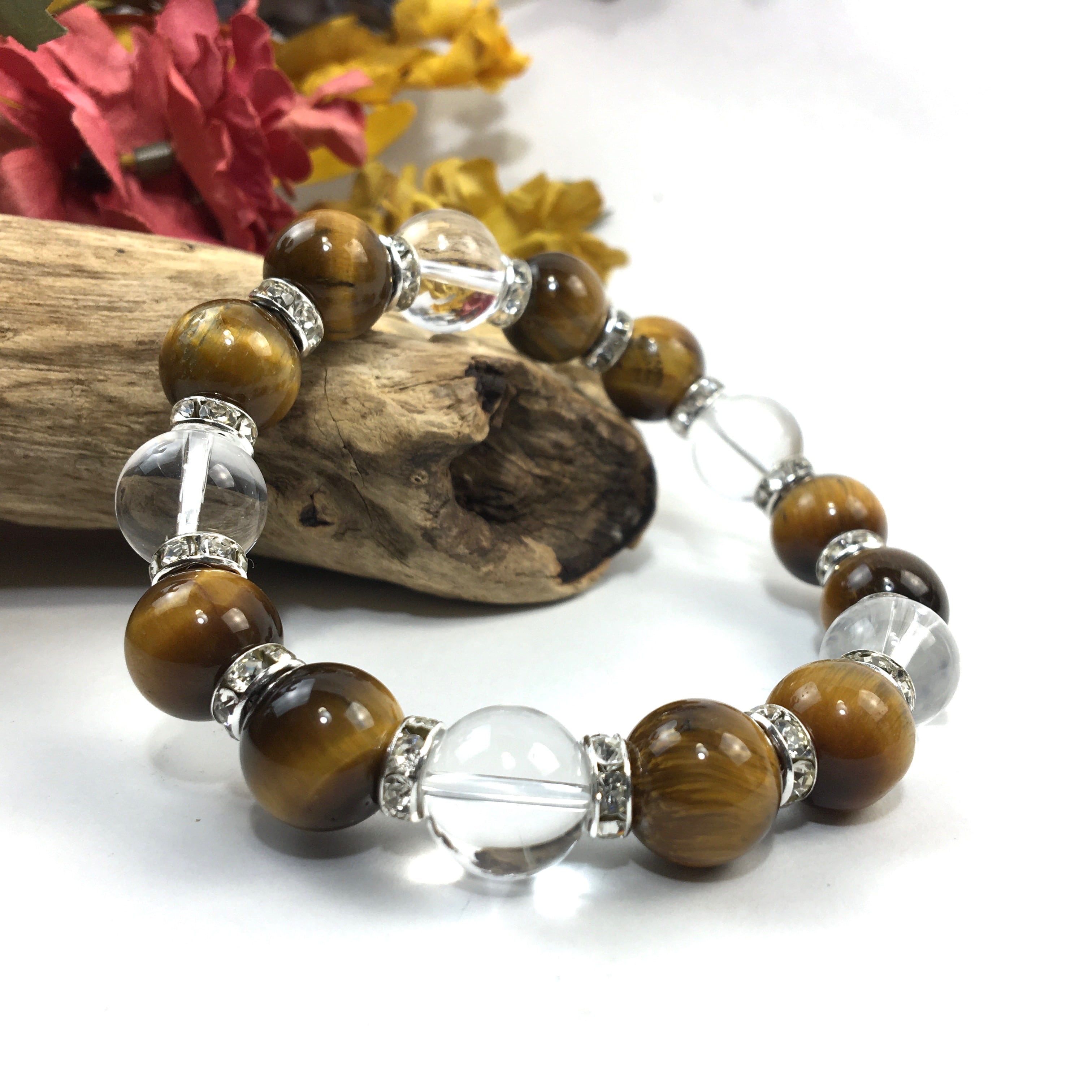 タイガーアイ&水晶 パワーストーン ブレスレット 天然石 12mm (シルバー)メンズ・レディース 男性・女性 数珠ブレス 開運 ☆