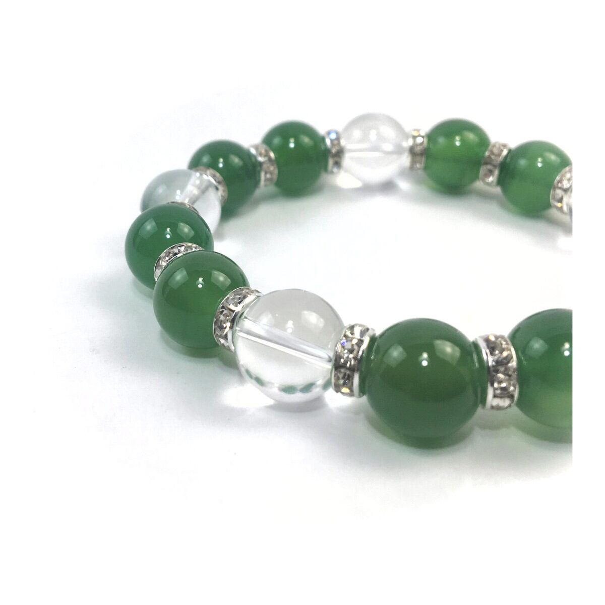 緑瑪瑙&水晶 パワーストーン ブレスレット 天然石 12mm (シルバー)メンズ・レディース 男性・女性 数珠ブレス 開運 ☆