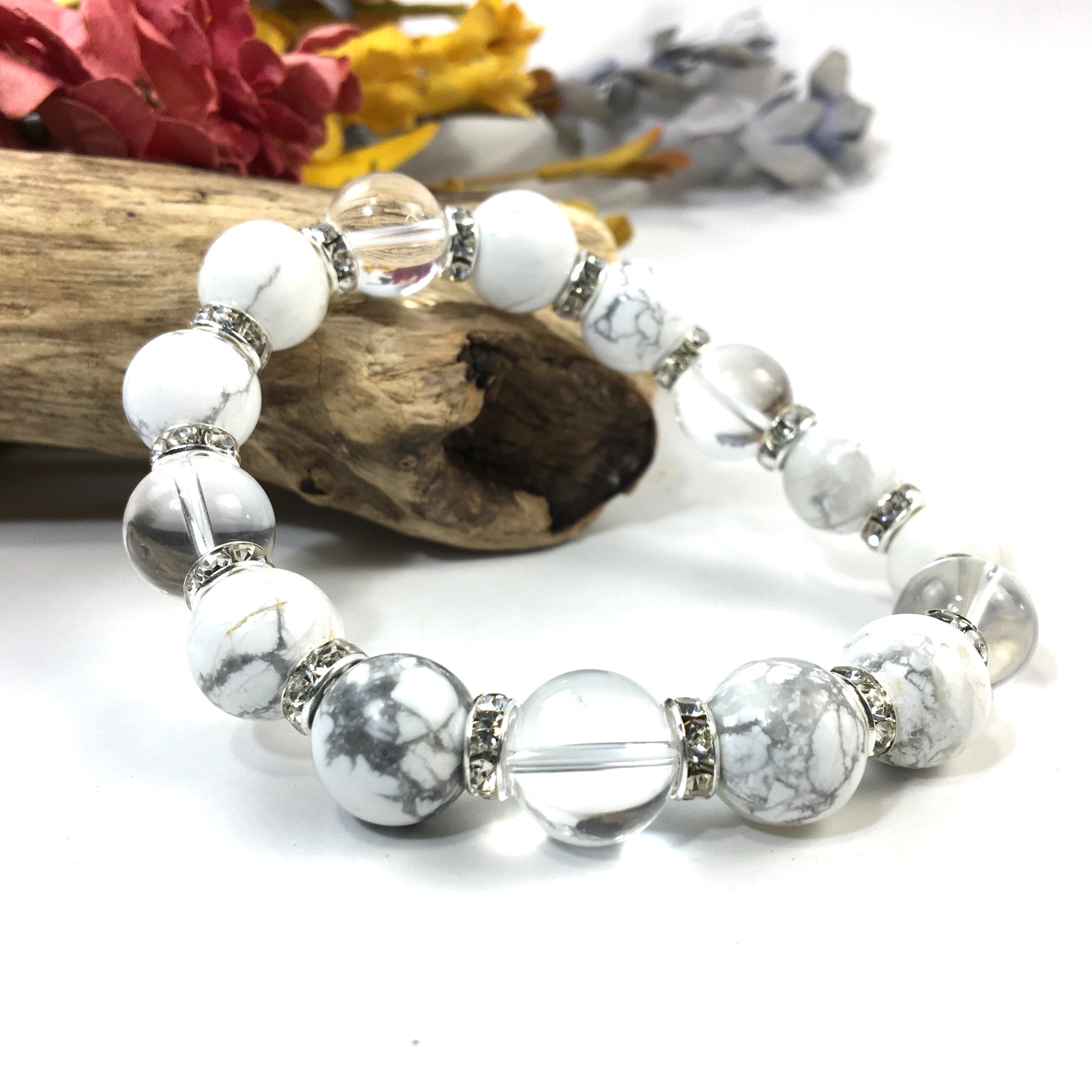 ハウライト&水晶 パワーストーン ブレスレット 天然石 12mm (シルバー)メンズ・レディース 男性・女性 数珠ブレス 開運 ☆