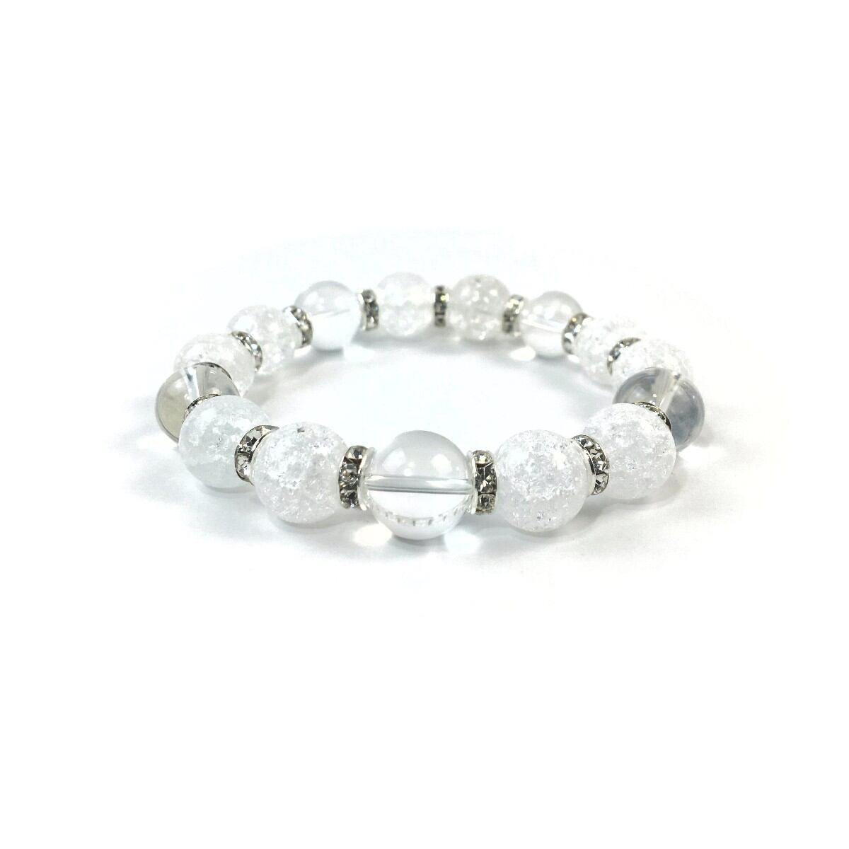 クラック水晶&水晶 パワーストーン ブレスレット 天然石 12mm (シルバー)メンズ・レディース 男性・女性 数珠ブレス 開運 ☆