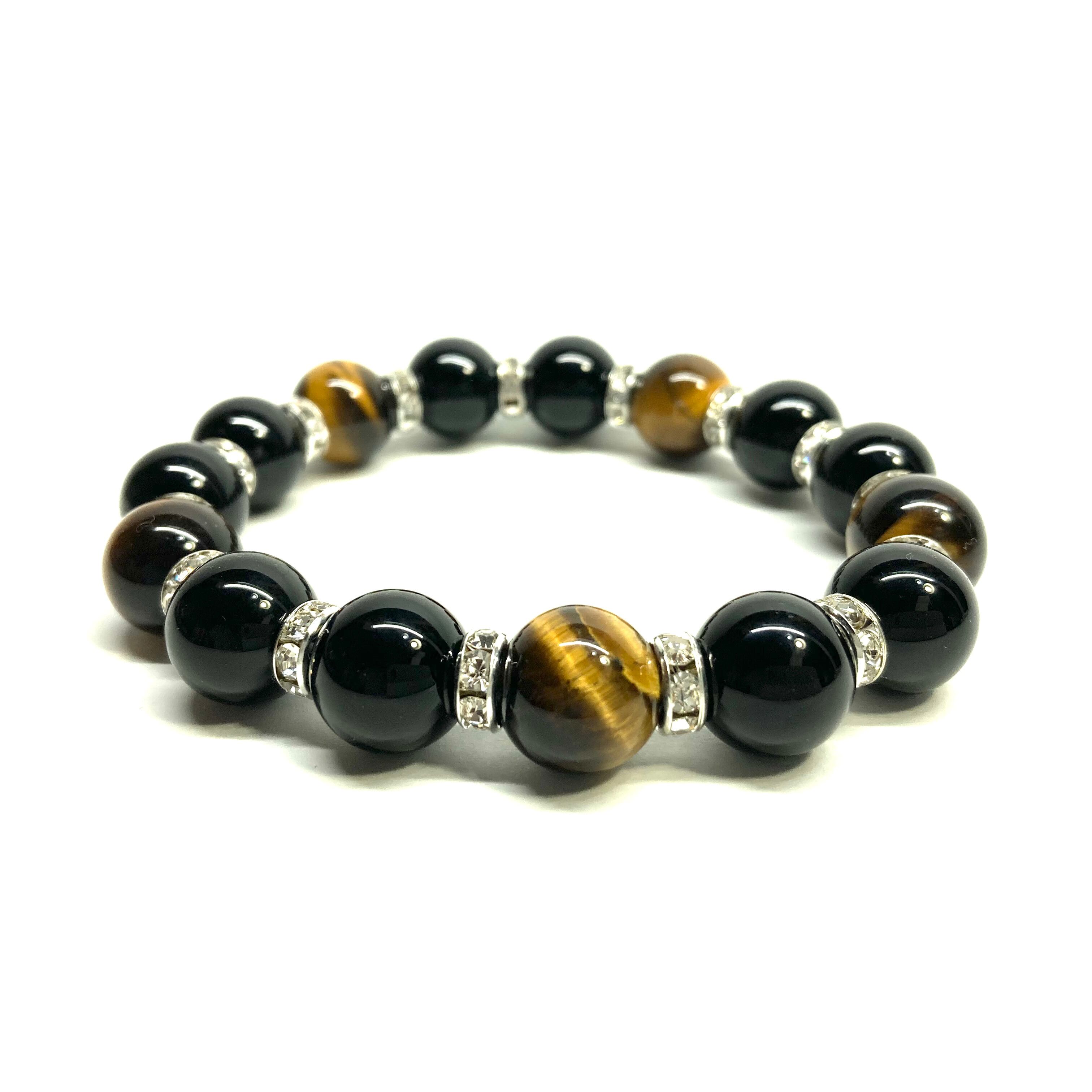 モリオン&タイガーアイ パワーストーン ブレスレット 天然石ブレス (シルバー) 12mm 幸運 開運 厄払い メンズ 男性 ☆