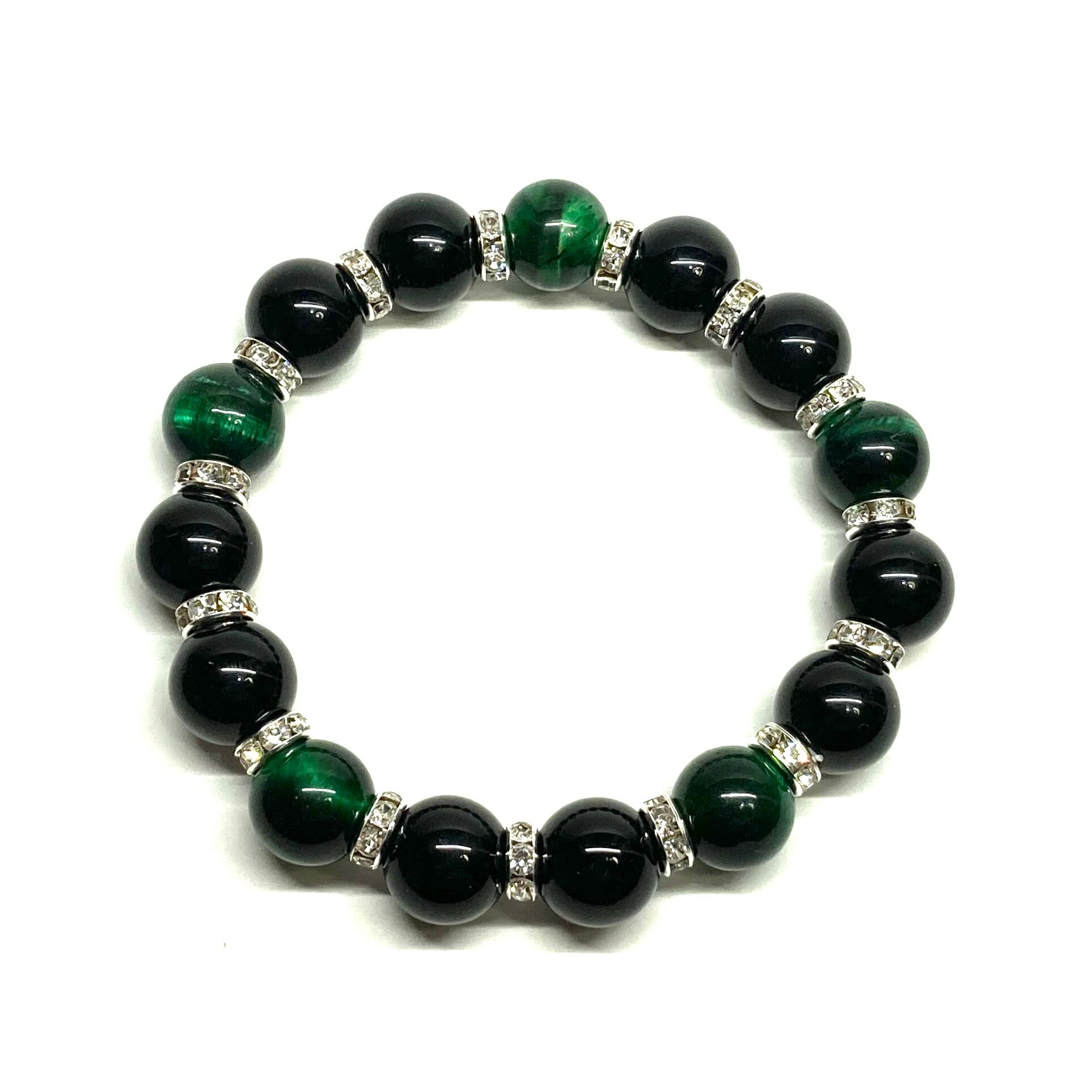 モリオン&グリーンタイガーアイ パワーストーン ブレスレット 天然石ブレス (シルバー) 12mm 幸運 開運 厄払い メンズ 男性 ☆