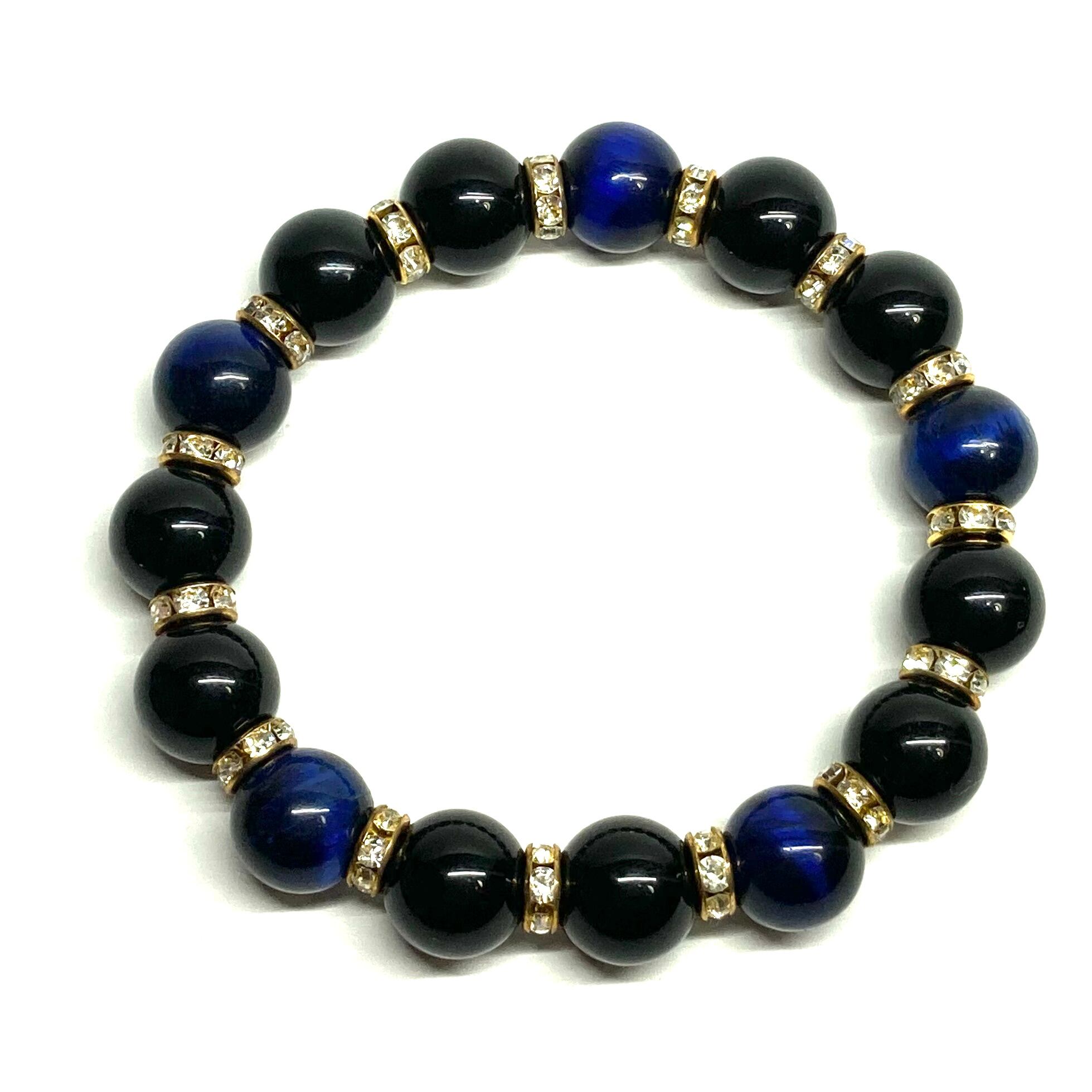 モリオン&ブルータイガーアイ パワーストーン ブレスレット 天然石ブレス (ゴールド) 12mm 幸運 開運 厄払い メンズ 男性 ☆