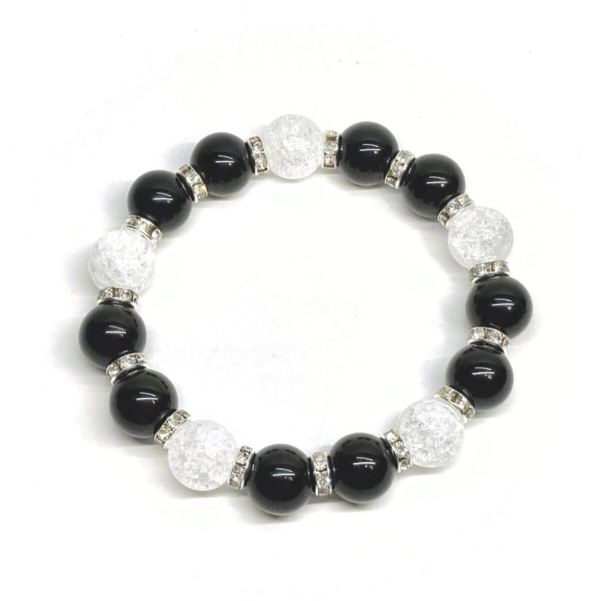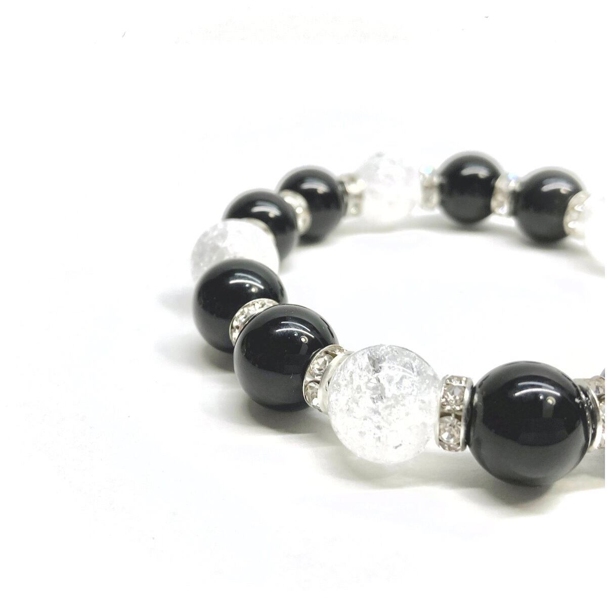 こちらは、モリオンとクラック水晶を組み合わせたパワーストーンブレスレットです。間にはロンデルを挟み高級感あるデザインに仕上げております。石大きさは12mm玉を使用して内周 約18cmです。気になる方は是非この機会にどうぞ。
