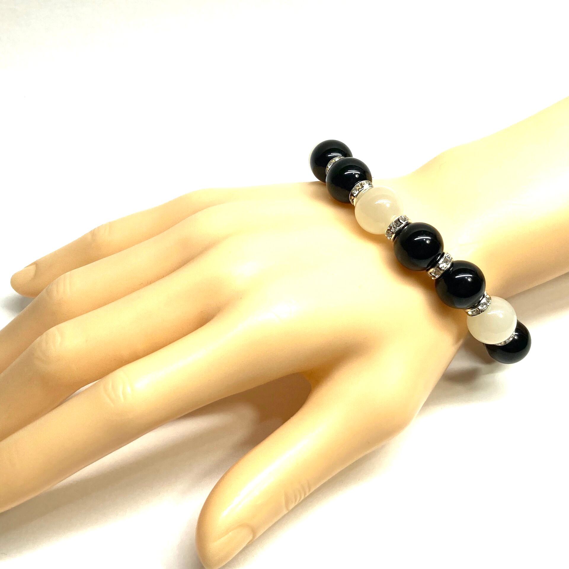 こちらは、モリオンとムーンストーンを組み合わせたパワーストーンブレスレットです。間にはロンデルを挟み高級感あるデザインに仕上げております。石大きさは12mm玉を使用して内周 約18cmです。気になる方は是非この機会にどうぞ。