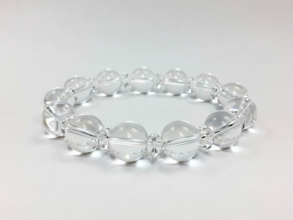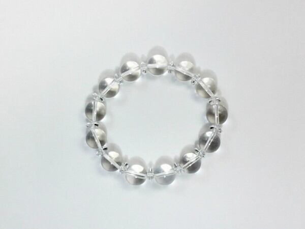 こちらは、水晶を使用したブレスレットです。間には水晶ソロバンが挟まれてアクセントとなっております。石大きさは腕にも馴染みやすいように12mm玉で内周約17cm(伸可能)です。気になる方は是非この機会にどうぞ。