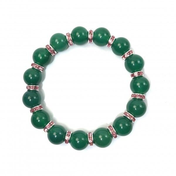 パワーストーン ブレスレット 緑瑪瑙 12mm 天然石ブレス (ピンク)メンズ・レディース 男性・女性 数珠ブレス 開運 ☆