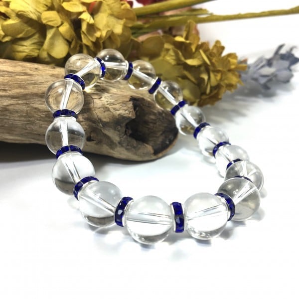 こちらは、12mm玉の水晶を使用した天然石ブレスレットです。石との間にはロンデルを挟み高級感を演出しています。シンプルなデザインですのでどんなコーディネートとも合わせ易いブレスレットです。石大きさは12mm玉です。内周約18cmです。気になる方は是非この機会にどうぞ。
