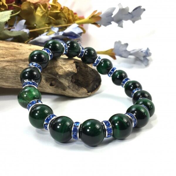 パワーストーン ブレスレット グリーンタイガーアイ 12mm (ブルー)メンズ・レディース 男性・女性 数珠ブレス 開運 ☆