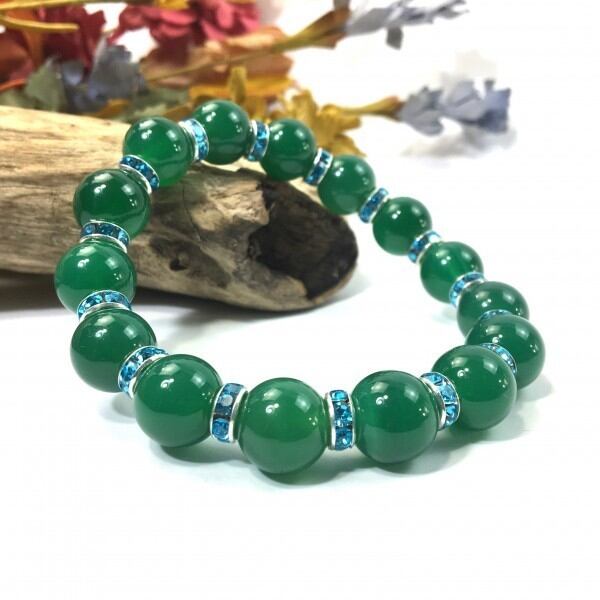 パワーストーン ブレスレット 緑瑪瑙 12mm 天然石ブレス (ライトブルー)メンズ・レディース 男性・女性 数珠ブレス 開運 ☆