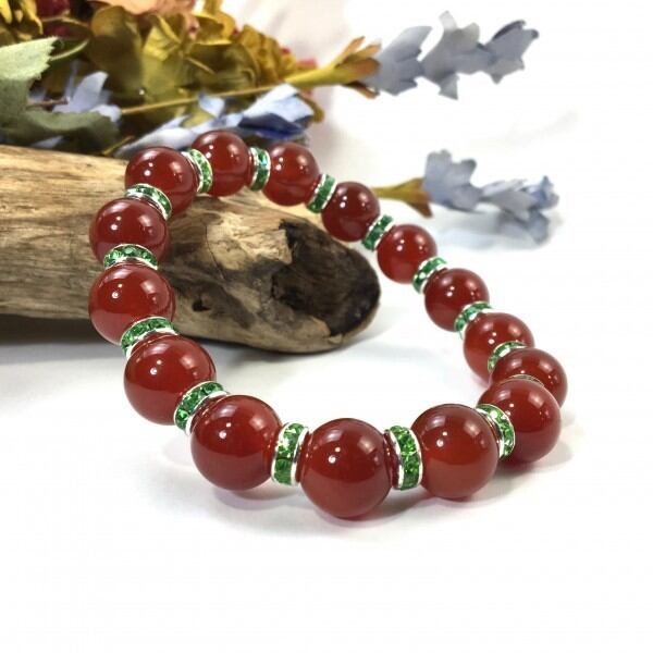 パワーストーン ブレスレット 赤瑪瑙 12mm 天然石ブレス (グリーン)メンズ・レディース 男性・女性 数珠ブレス 開運 ☆