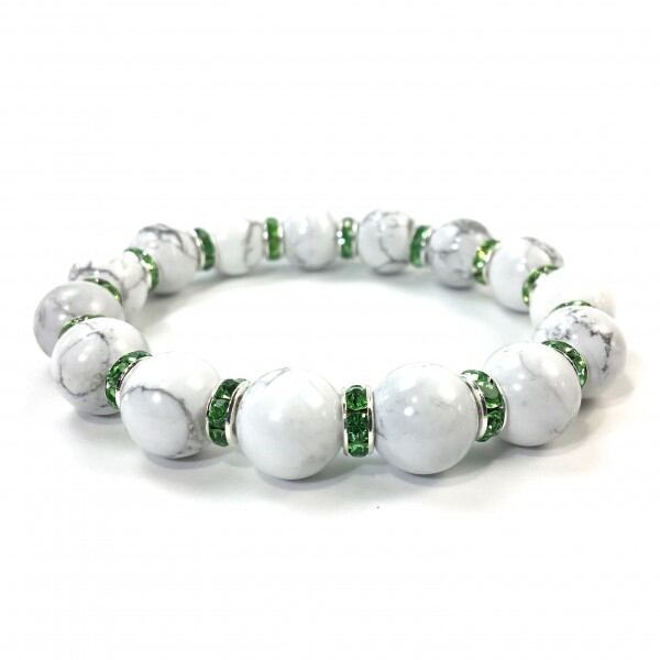 パワーストーン ブレスレット ハウライト 12mm 天然石ブレス (グリーン)メンズ・レディース 男性・女性 数珠ブレス 開運 ☆