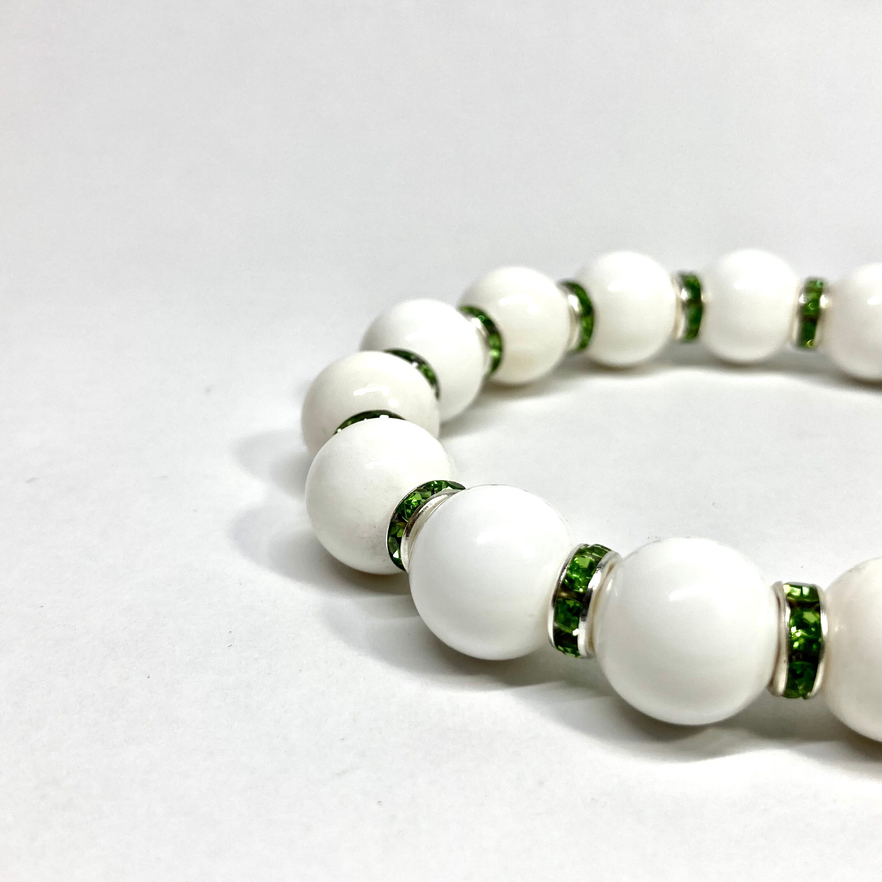 ホワイトオニキス パワーストーン ブレスレット 12mm 天然石ブレス (グリーン)メンズ・レディース 男性・女性 数珠ブレス 開運 ☆