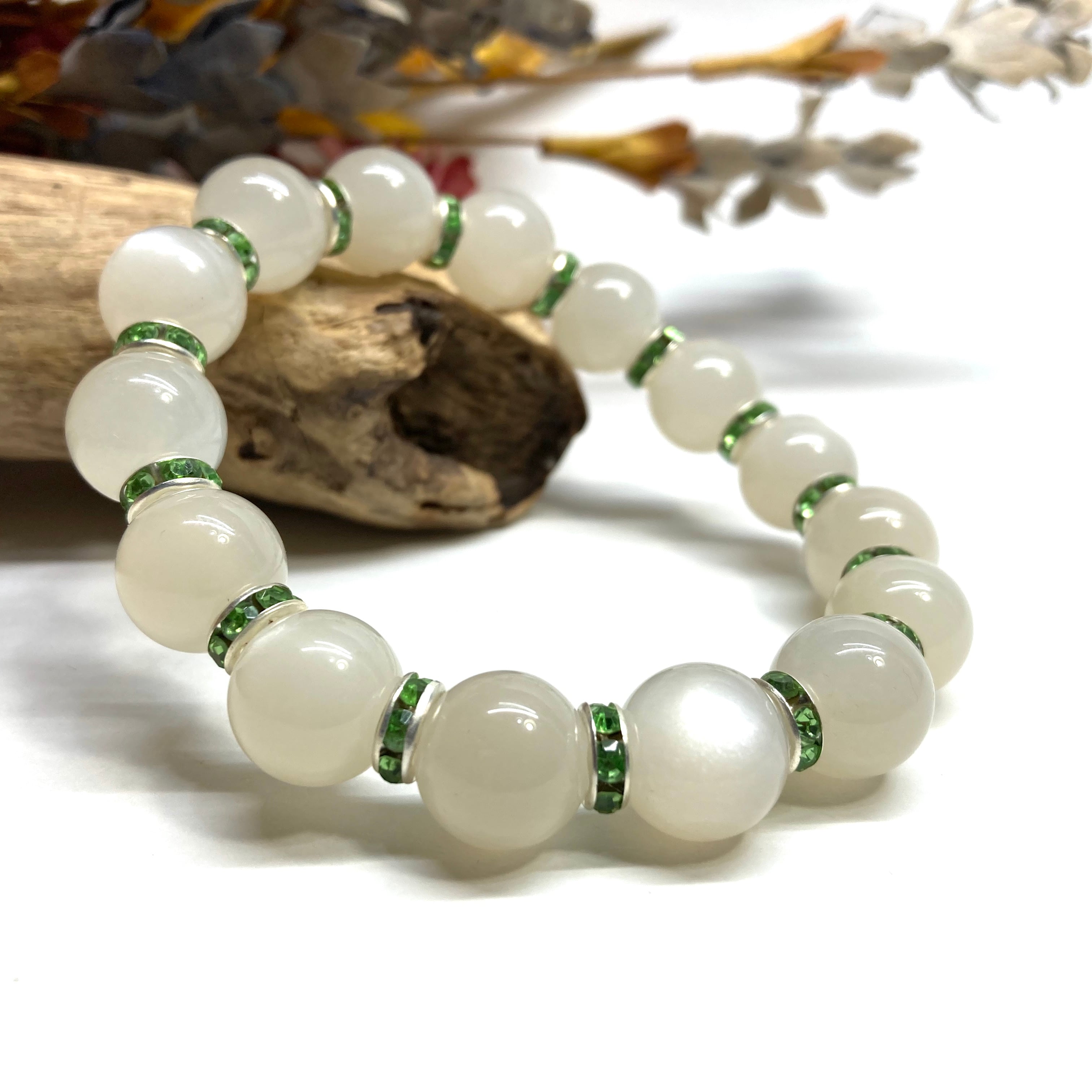 ムーンストーン パワーストーン ブレスレット 12mm 天然石ブレス (グリーン)メンズ・レディース 男性・女性 数珠ブレス 開運 ☆
