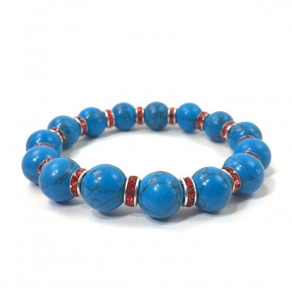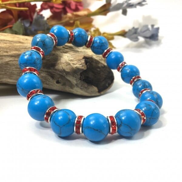 パワーストーン ブレスレット ターコイズ 12mm (レッド)メンズ・レディース 男性・女性 数珠ブレス 開運 ☆