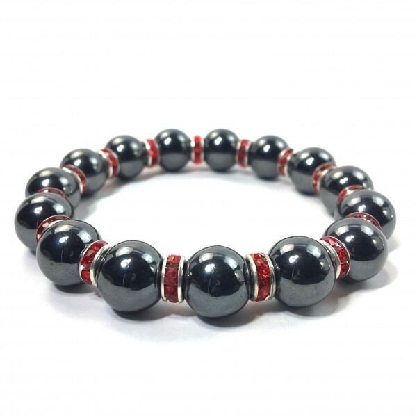 こちらは、12mm玉のヘマタイトを使用した天然石ブレスレットです。石との間にはロンデルを挟み高級感を演出しています。シンプルなデザインですのでどんなコーディネートとも合わせ易いブレスレットです。石大きさは12mm玉です。。内周約18cmです。気になる方は是非この機会にどうぞ。