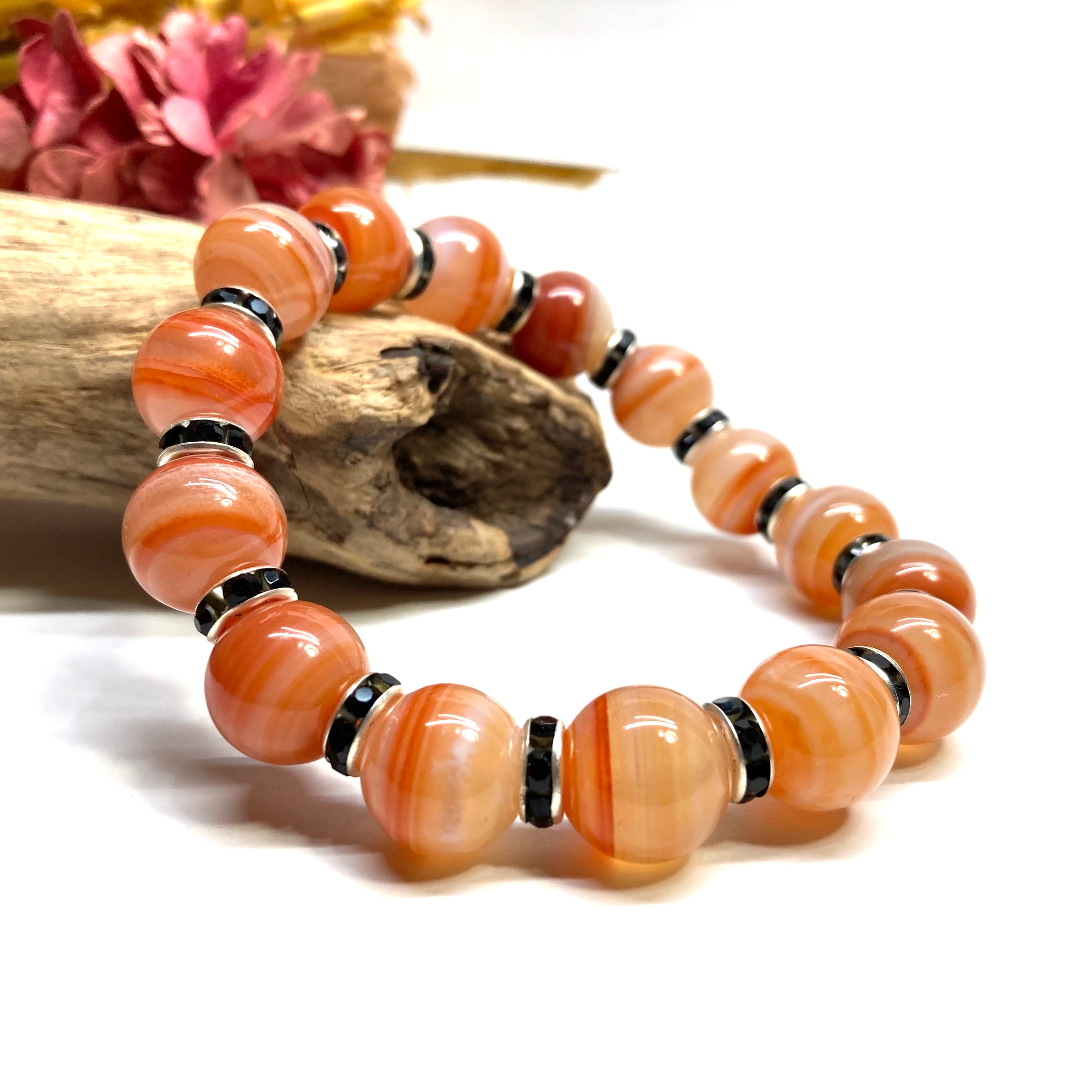 カーネリアン・サードニクス パワーストーン ブレスレット 12mm (ブラック)メンズ・レディース 男性・女性 数珠ブレス 開運 ☆