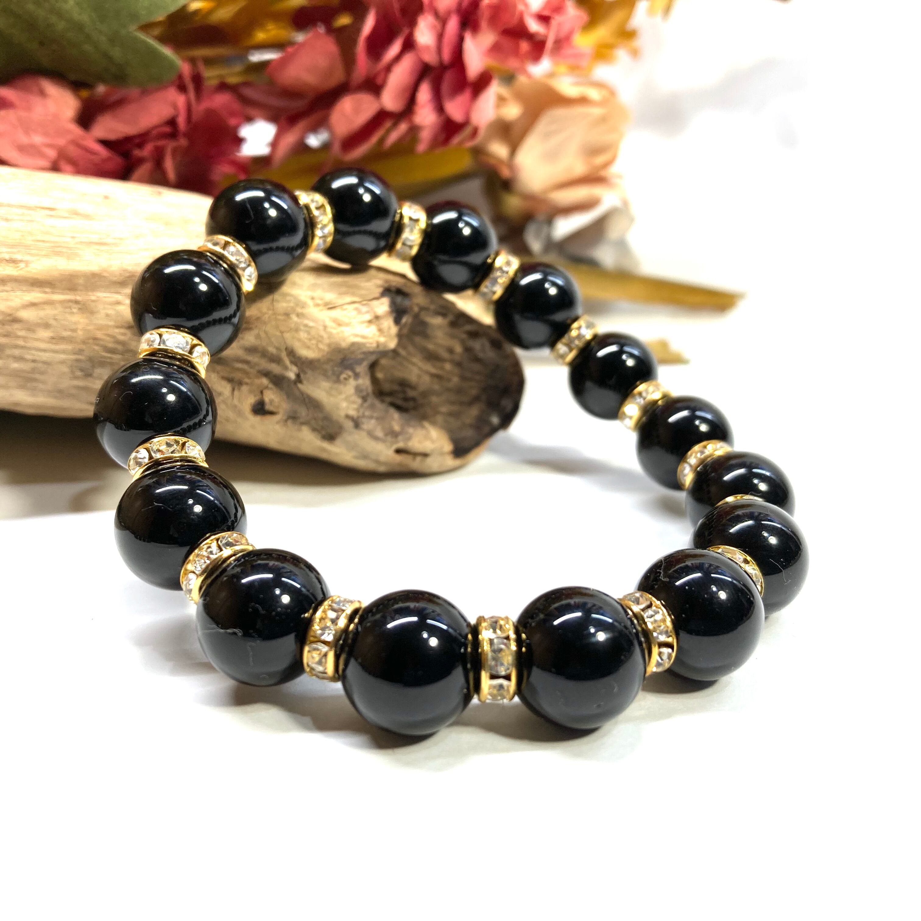 こちらは、10mm玉のモリオンを使用したパワーストーンブレスレットです。間にはロンデルを挟み高級感を演出しております。男女問わずどんなコーディネートとも合わせ易いブレスレットです。サイズは内周約18cmです。数に限りがございますので気になる方はお早めにどうぞ。